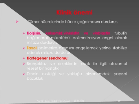 Prof. Dr. Canan Hürdağ, Hücre İskeleti 20.04.2023 39