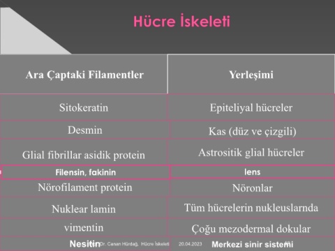 Prof. Dr. Canan Hürdağ, Hücre İskeleti