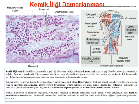 uzunlamasına vene boşaltır. Periosteal kan damarları, medüller kapillerler ve medüller venöz sinüzoidlerle bağlantılı periosteal pleksusları