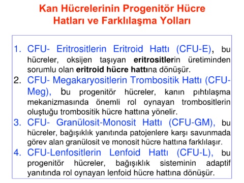 1. CFU- Eritrositlerin Eritroid Hattı (CFU-E), bu
