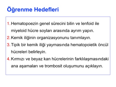 1.Hematopoezin genel sürecini bilin ve lenfoid ile
