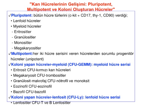 ✓Koloni yapan hücreler-lenfosit (CFU-Ly): lenfoid hücre serisi