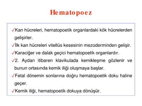 ✓Karaciğer ve dalak geçici hematopoetik organlardır.