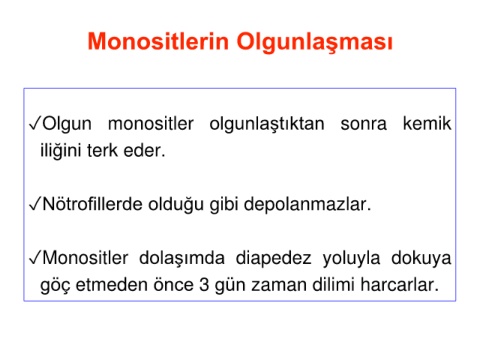 ✓Olgun monositler olgunlaştıktan sonra kemik