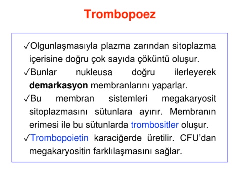 ✓Trombopoietin karaciğerde üretilir. CFU’dan