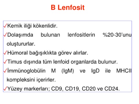 ✓Dolaşımda bulunan lenfositlerin %20-30’unu