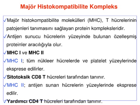 ✓MHC II; antijen sunan hücrelerin yüzeylerinde eksprese