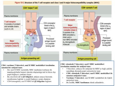 • Her sınıf II MHC molekülü, MHC tarafından kodlanan iki • T hücreleri, yalnızca bir antijenin bir MHC'ye bağlı şekilde