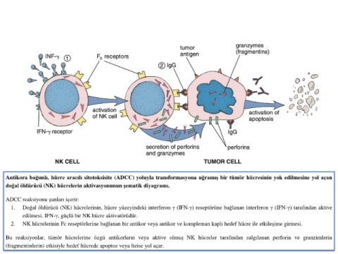 Bu reaksiyonlar, tümör hücrelerine özgü antikorların veya aktive olmuş NK hücreler tarafından salgılanan perforin ve granzimlerin
