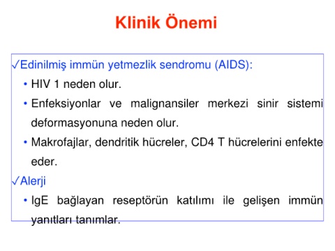 • Makrofajlar, dendritik hücreler, CD4 T hücrelerini enfekte