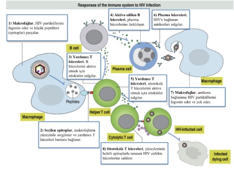 1) Makrofajlar, HIV partiküllerini hücrelerine farklılaşır. antikorları salgılar.