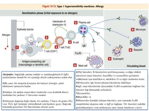 1)Bu yanıt, bir alerjenin koruyucu bir bariyeri (örneğin, epitel 5)B hücreleri, IgE üreten plazma hücrelerine farklılaşır.