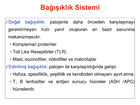✓Doğal bağışıklık: patojenle daha önceden karşılaşmayı