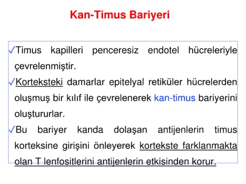 ✓Bu bariyer kanda dolaşan antijenlerin timus