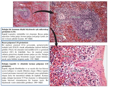 adacıkları (white pulp), kırmızı pulpa (red pulp) içinde yer