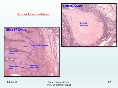 Korpus Luteum-albikans Prof. Dr. Canan HURDAG 06-Apr-20 Kadın Üreme sistemi, 37 Prof. Dr. Canan Hürdağ