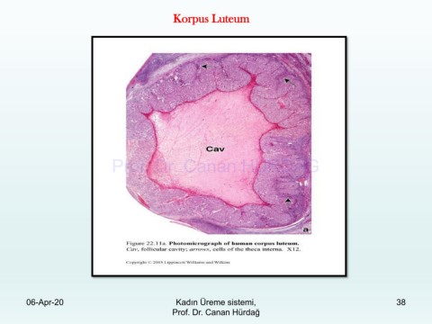 Korpus Luteum Prof. Dr. Canan HURDAG 06-Apr-20 Kadın Üreme sistemi, 38 Prof. Dr. Canan Hürdağ