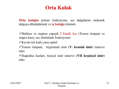 10/21/2025 Prof. C. Hürdağ, Kulak Histolojisi ve 12