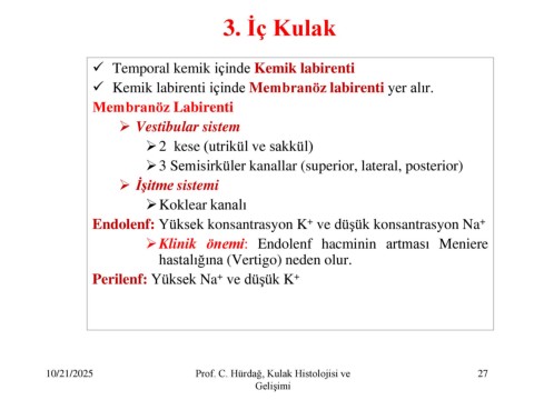 10/21/2025 Prof. C. Hürdağ, Kulak Histolojisi ve 27
