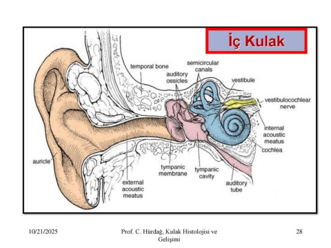 İç Kulak 10/21/2025 Prof. C. Hürdağ, Kulak Histolojisi ve 28 Gelişimi
