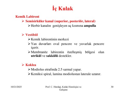 10/21/2025 Prof. C. Hürdağ, Kulak Histolojisi ve 30