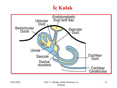 İç Kulak 10/21/2025 Prof. C. Hürdağ, Kulak Histolojisi ve 32 Gelişimi
