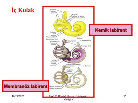 İç Kulak Kemik labirent Membranöz labirent 10/21/2025 Prof. C. Hürdağ, Kulak Histolojisi ve 35 Gelişimi