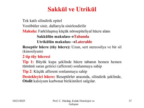 10/21/2025 Prof. C. Hürdağ, Kulak Histolojisi ve 37