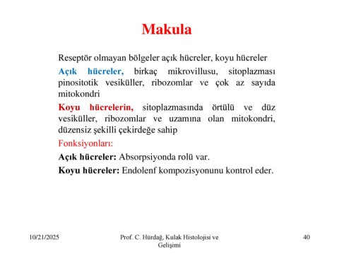 10/21/2025 Prof. C. Hürdağ, Kulak Histolojisi ve 40