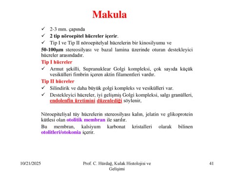 10/21/2025 Prof. C. Hürdağ, Kulak Histolojisi ve 41