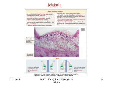 Makula 10/21/2025 Prof. C. Hürdağ, Kulak Histolojisi ve 46 Gelişimi