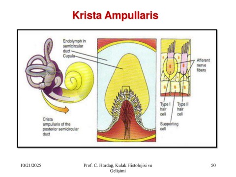 Krista Ampullaris 10/21/2025 Prof. C. Hürdağ, Kulak Histolojisi ve 50 Gelişimi