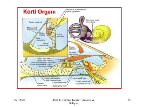 Korti Organı 10/21/2025 Prof. C. Hürdağ, Kulak Histolojisi ve 65 Gelişimi