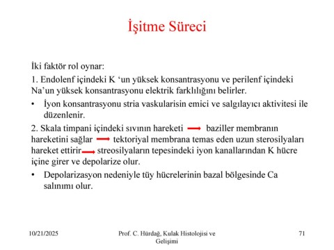 10/21/2025 Prof. C. Hürdağ, Kulak Histolojisi ve 71
