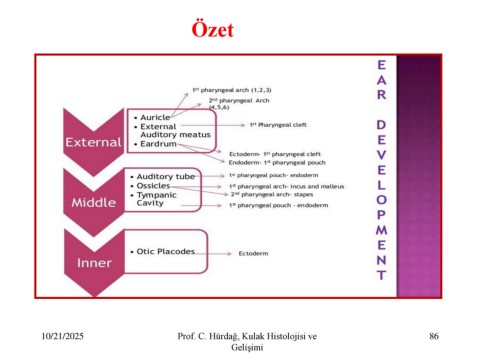 Özet 10/21/2025 Prof. C. Hürdağ, Kulak Histolojisi ve 86 Gelişimi