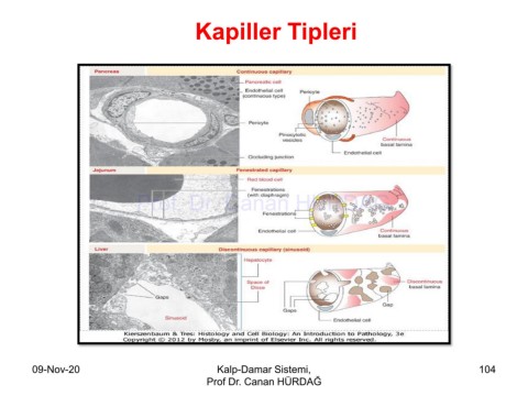 Kapiller Tipleri Prof. Dr. Canan HURDAG 09-Nov-20 Kalp-Damar Sistemi, 104 Prof Dr. Canan HÜRDAĞ