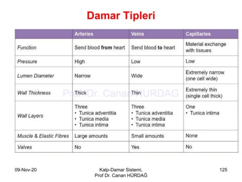 Damar Tipleri Prof. Dr. Canan HURDAG 09-Nov-20 Kalp-Damar Sistemi, 125 Prof Dr. Canan HÜRDAĞ
