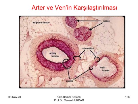 Arter ve Ven’in Karşılaştırılması Prof. Dr. Canan HURDAG 09-Nov-20 Kalp-Damar Sistemi, 126 Prof Dr. Canan HÜRDAĞ