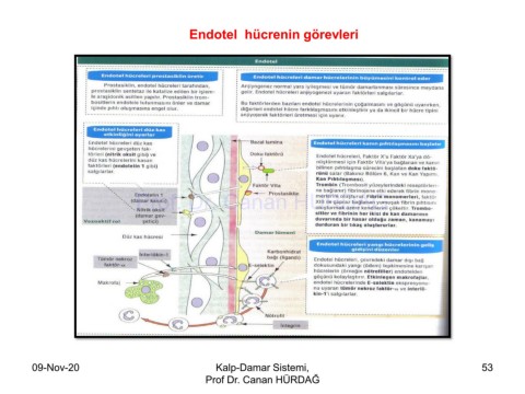 Endotel hücrenin görevleri Prof. Dr. Canan HURDAG 09-Nov-20 Kalp-Damar Sistemi, 53 Prof Dr. Canan HÜRDAĞ