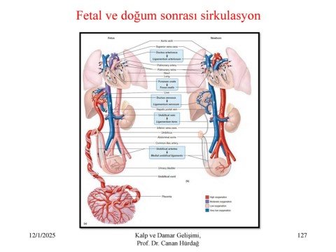 Fetal ve doğum sonrası sirkulasyon 12/1/2025 Kalp ve Damar Gelişimi, 127 Prof. Dr. Canan Hürdağ