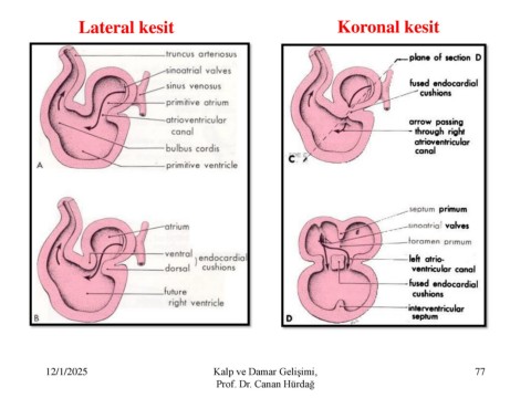 Lateral kesit Koronal kesit 12/1/2025 Kalp ve Damar Gelişimi, 77 Prof. Dr. Canan Hürdağ