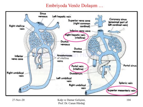 Embriyoda Venöz Dolaşım … Prof. Dr. Canan HURDAG 27-Nov-20 Kalp ve Damar Gelişimi, 104 Prof. Dr. Canan Hürdağ