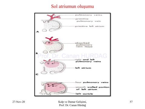 Sol atriumun oluşumu Prof. Dr. Canan HURDAG 27-Nov-20 Kalp ve Damar Gelişimi, 57 Prof. Dr. Canan Hürdağ