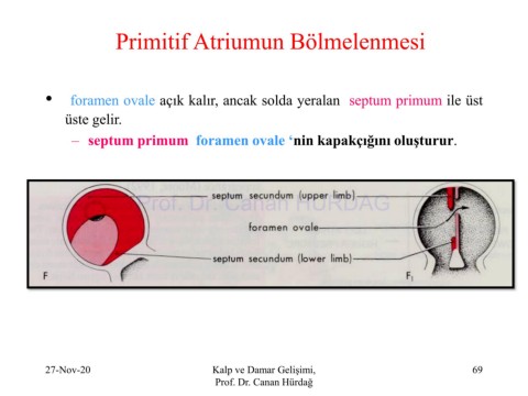 – septum primum foramen ovale ‘nin kapakçığını oluşturur.