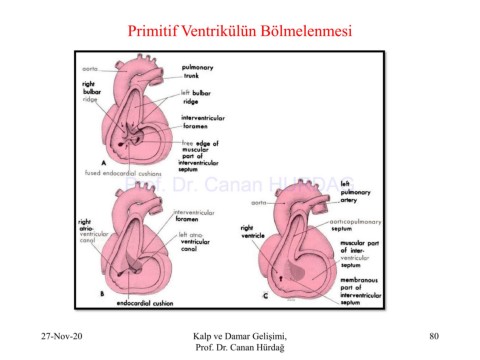 Primitif Ventrikülün Bölmelenmesi Prof. Dr. Canan HURDAG 27-Nov-20 Kalp ve Damar Gelişimi, 80 Prof. Dr. Canan Hürdağ