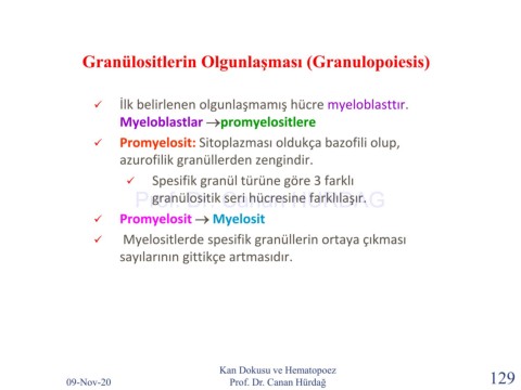 ✓ Myelositlerde spesifik granüllerin ortaya çıkması