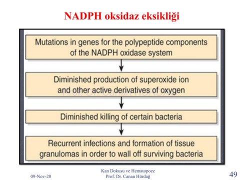 NADPH oksidaz eksikliği Prof. Dr. Canan HURDAG Kan Dokusu ve Hematopoez 09-Nov-20 Prof. Dr. Canan Hürdağ 49