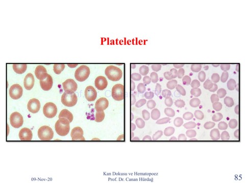 Plateletler Prof. Dr. Canan HURDAG Kan Dokusu ve Hematopoez 09-Nov-20 Prof. Dr. Canan Hürdağ 85