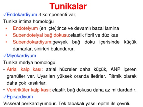 • Ventriküler kalp kası: elastik bağ dokusu daha az miktardadır.