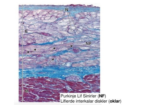 Purkinje Lif Sinirler (NF) Liflerde interkalar diskler (oklar)